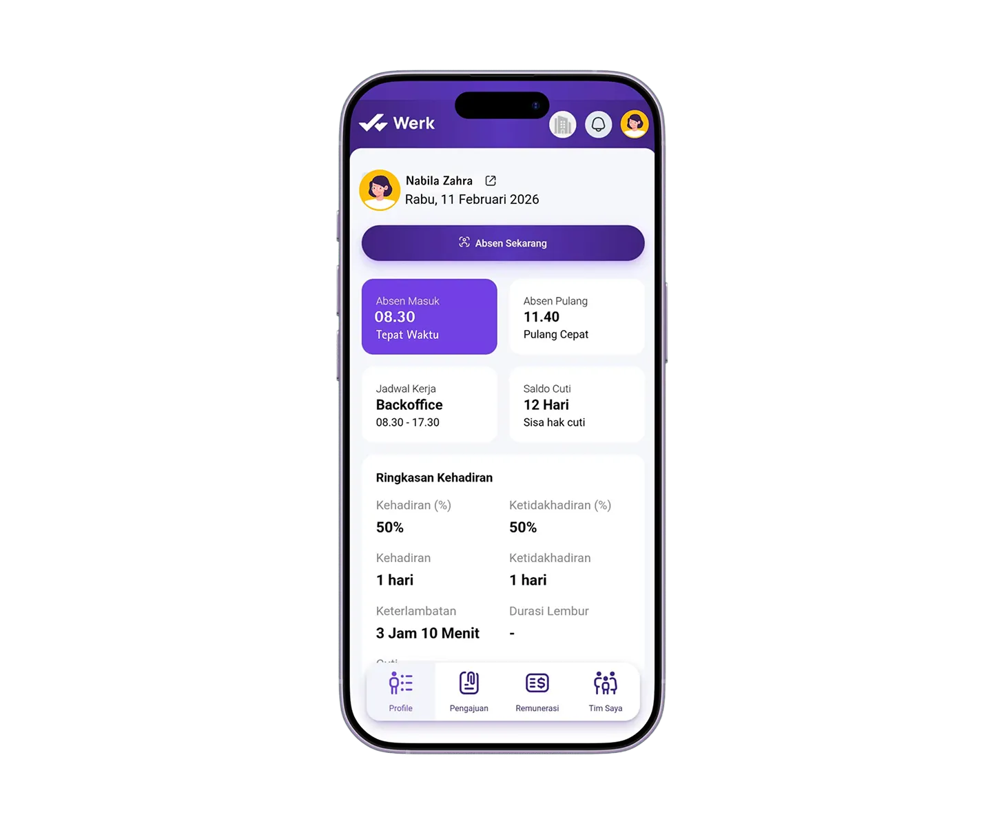 Absensi hingga manajemen karyawan dalam satu sistem.
